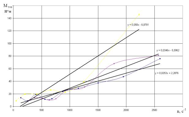 тормозного момента описываемого уравнением Мтор = а + b*n, где коэффициент b характеризует скорость убывания частоты вращения