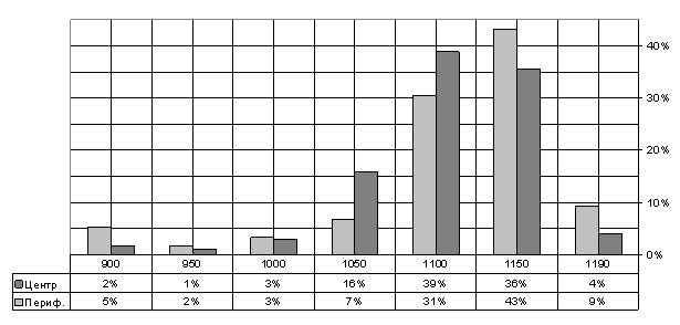 [4]. Повышенный по сравнению с центром процент чипов с UR <950В вполне ожидаем и не нуждается в объяснении.