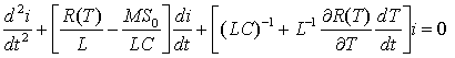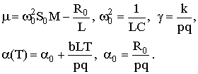 предполагается линейным, M – взаимная индуктивность цепи обратной связи, R(T) – активное сопротивление, зависящее от температуры T, L и С – индуктивность и емкость в колебательном контуре.