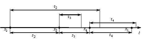 of the distribution of a time interval between the moments of the beginning of