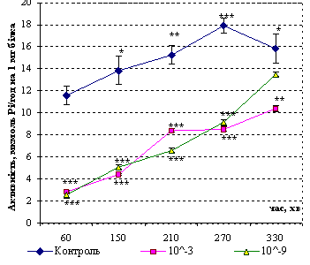 порівнянні з контролем (рис. 2). Очевидно у низьких концентраціях ці біологічно