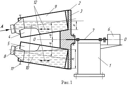 При обертанні відбувається перетікання робочої рідини по стінках ємностей 8, 9