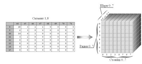 компонент квантованих сегментів. Відновлення відбувається згідно вмісту матриць