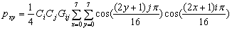 застосовують ДКП. В результаті трансформації матриці зображення на базі ДКП,