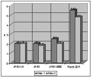 в 2,35 рази в порівнянні з методами JPEG-LS та JPEG-2000, та в 2,6 разів в порівнянні з методом JPEG-2000 для