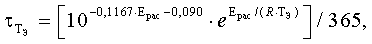 учетом перечисленных действующих факторов, расчетное значение энергии активации