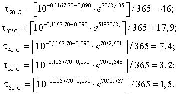 годах для полимерного покрытия при конкретном значении температуры эксплуатации