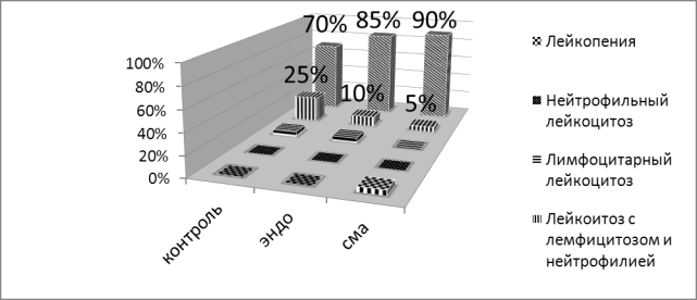 учитывались только абсолютные значения, а так же характер лейкоцитоза