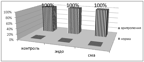 Критерий достоверности для количества эритроцитов: t(эндо) = 1.07, t(сма) = 0.36, что говорит об отсутствии различий среди