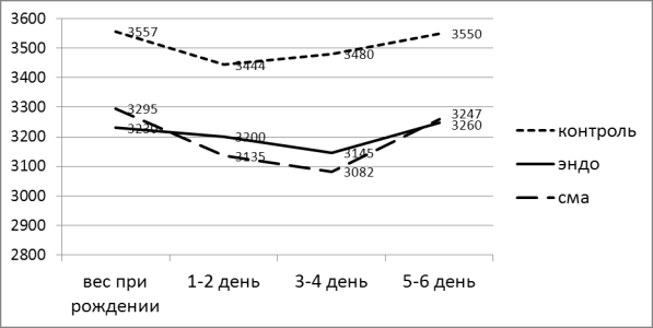 (5-6 сутки) восстановили физиологически потерянную массу тела (рис. 9).