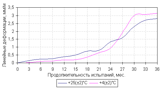 1. Линейные деформации бетона при кристаллизации в нем эттрингита(+25°С) и
