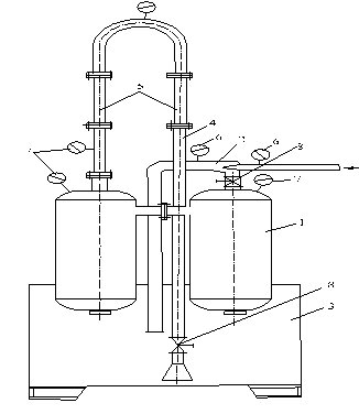 Схема лабораторной установки состоит из герметичной спаренной емкости 1,