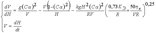 где при t=0 H=0 V=Vmax, при H=Hm V=0, g=9,8м/с2 –