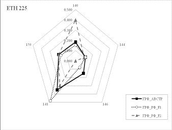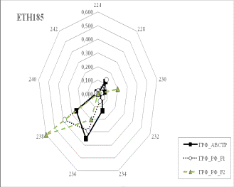 ГРФ_РФ_F2. У ГРФ_РФ_F2 частота аллеля 140 локуса ETH225 выше в 4 раза по сравнению с