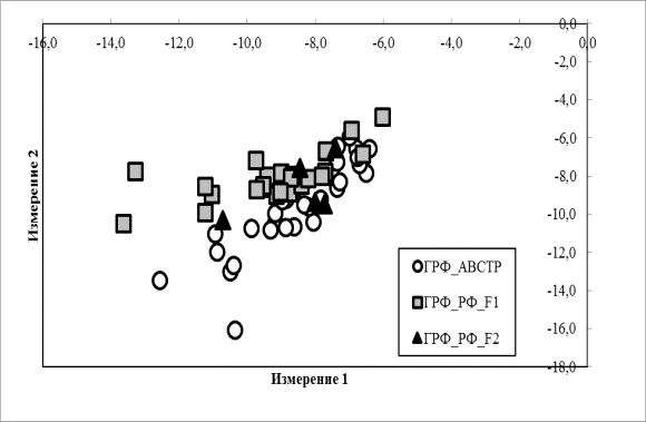 (ГРФ_F1, n=26) и второй российской генерации (ГРФ_F2, n=10).