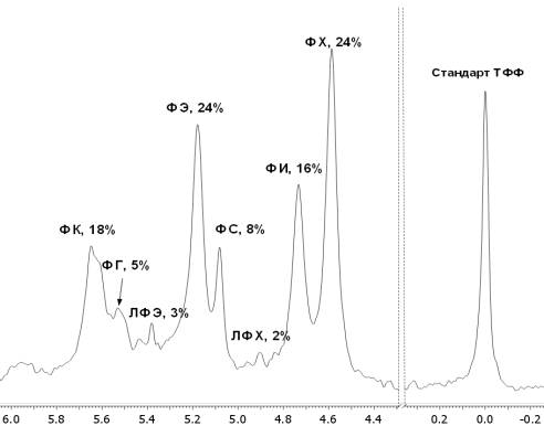 интегральной интенсивности сигналов ФХ, ФС и ФК в спектрах 31Р-ЯМР
