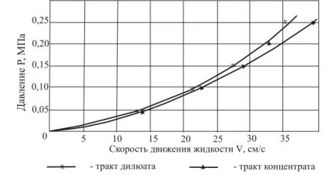 воды по трактам в зависимости от давления на входе