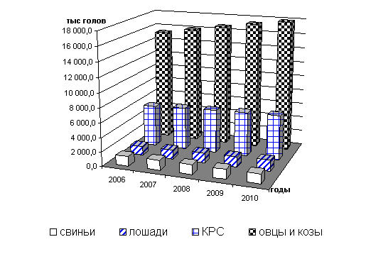 Проанализируем изменение поголовья животных в Казахстане за период 2006-2010