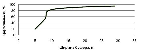 ширине буфера 10 м эффективность составляет более 80 %. Дальнейшее увеличение ширины