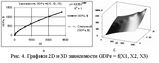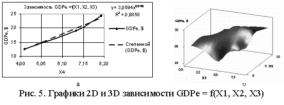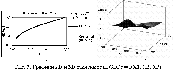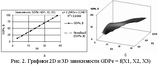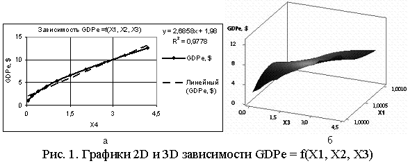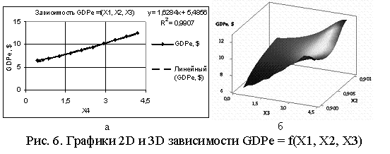 Х2 = 1, Х3 = 4,2…42. В данном примере полученная зависимость ВВП (GDPe) = f(Х1, Х2, Х3) изменяется также по линейному