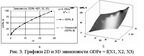 GDPe, где переменные имели следующие значения: Х1 = Х2 = 1…0,1, Х3 =