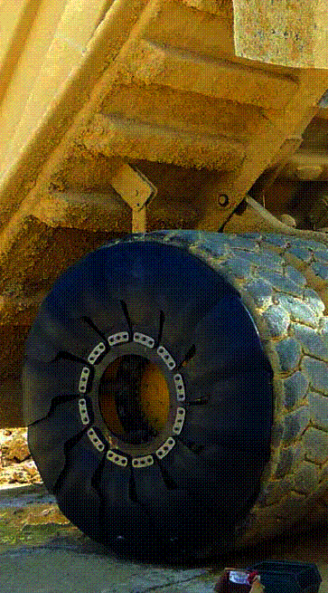 device is mounted to the wheel hub of utility vehicles as dumptrucks or