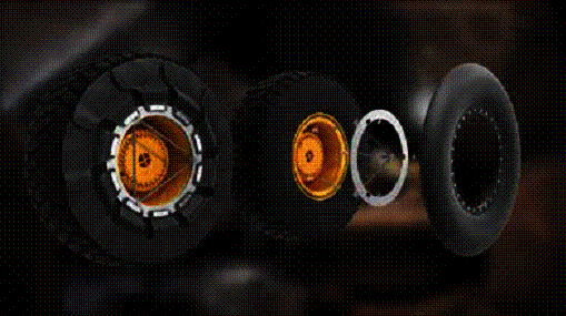 within the wheel hub and almost brushes the ground preventing sharp rocks from