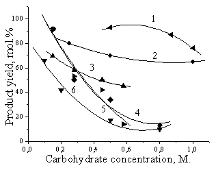 – interaction with substrate molecule or molecular products of its conversion (5-HMF or LA etc.)