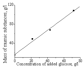 glucose concentration on the humic substance mass in fructose conversion (0.4