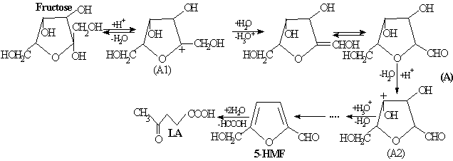 to levulinic acid (4-ketopentanoic acid, LA) and 5-hydroxymetylfurfural