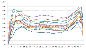 вертикали кадра для каждого столбца среднего уровня яркости и дисперсии. Оценка