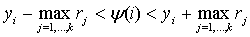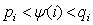 between xi and yi,