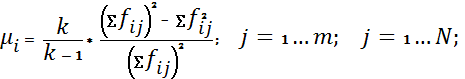 формула (1), из которой коэффициент согласованности ответов (1 - m i)