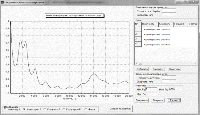 многослойной конструкции в зависимости от частоты акустического сигнала.