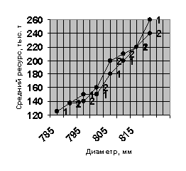800-820 мм обеспечивает повышение их ресурса с 154041 до 210050 т (36%), за