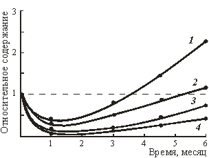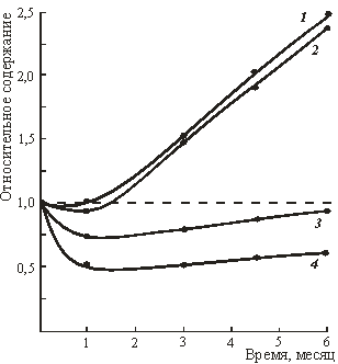 после 2-х месяцев наблюдается незначительный рост содержания металлов. В целом