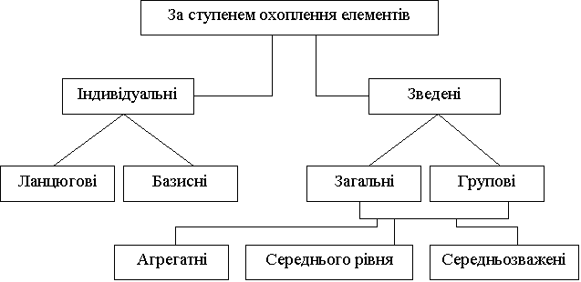 елементів розрізняють індекси: індивідуальні; зведені. У свою чергу