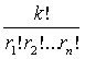 извлечений k шаров из урны с возвращением, при которых были извлечены r1 шары с числом l1 , r2 шары с числом l2 , и так далее, r n шары с числом ln, есть полиномиальный коэффициент