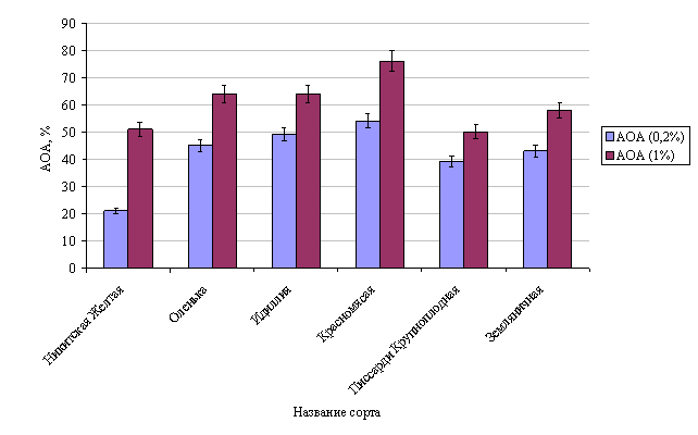 АОА при концентрации образца 0,2 % составила 21-54 % и при максимальной