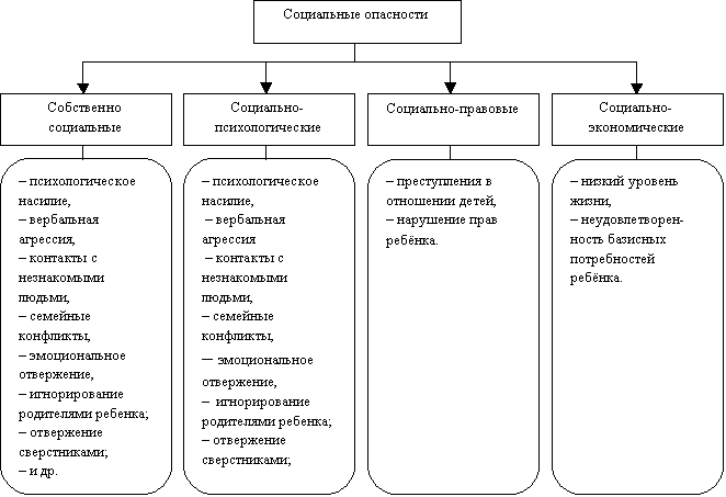 Мы можем выделить несколько групп социальных опасностей, характерных для детей
