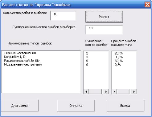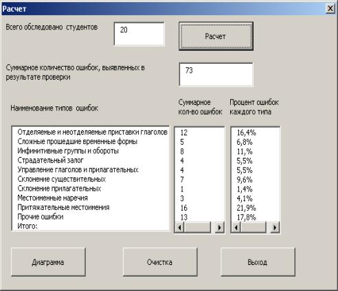 В режиме «Расчет» вычисляются итоговые данные об ошибках каждого типа, выявленных во всех проверенных работах за определенный период времени.