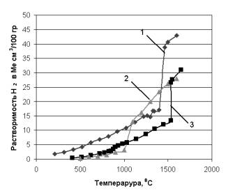 Рис.1. Изменение растворимости водорода при