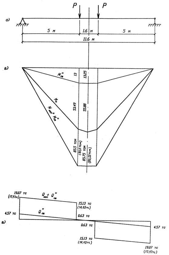 - Мисп, Qисп- моменты и поперечные силы от контрольной нагрузки Р.