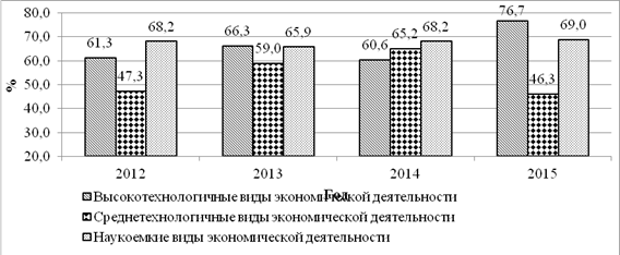 затрат. С 2012 г. по 2015 г. наблюдается стабильный рост интенсивности НИОКР.