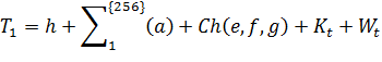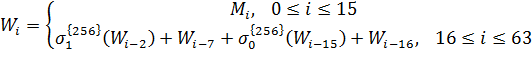 Таким чином, повідомлення перетворюється, і далі його розбивають на N 512 бітних блоки.Нижче приведена схема знаходження гешу алгоритму SHA-256.