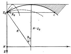 Определить горизонтальную дальность полёта снаряда, если его начальная скорость