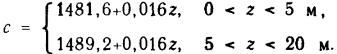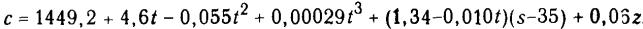 0.1 %), глубины z (в метрах); рассчитать скорость звука с (в м/с). Формулы