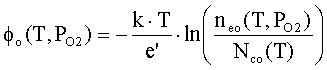 – объемная плотность состояний на дне зоны проводимости оксида; k – постоянная Больцмана; e’ – заряд электрона; Т – температура; РО2