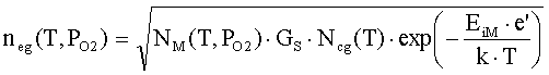 neg(T,PO2) – концентрация электронов в парах оксида; Ncg(T) – плотность состояний в континууме.