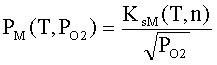 газе; PA – атмосферное давление; KsM(T,n) – константа равновесия реакции MO = M+0.5O2.